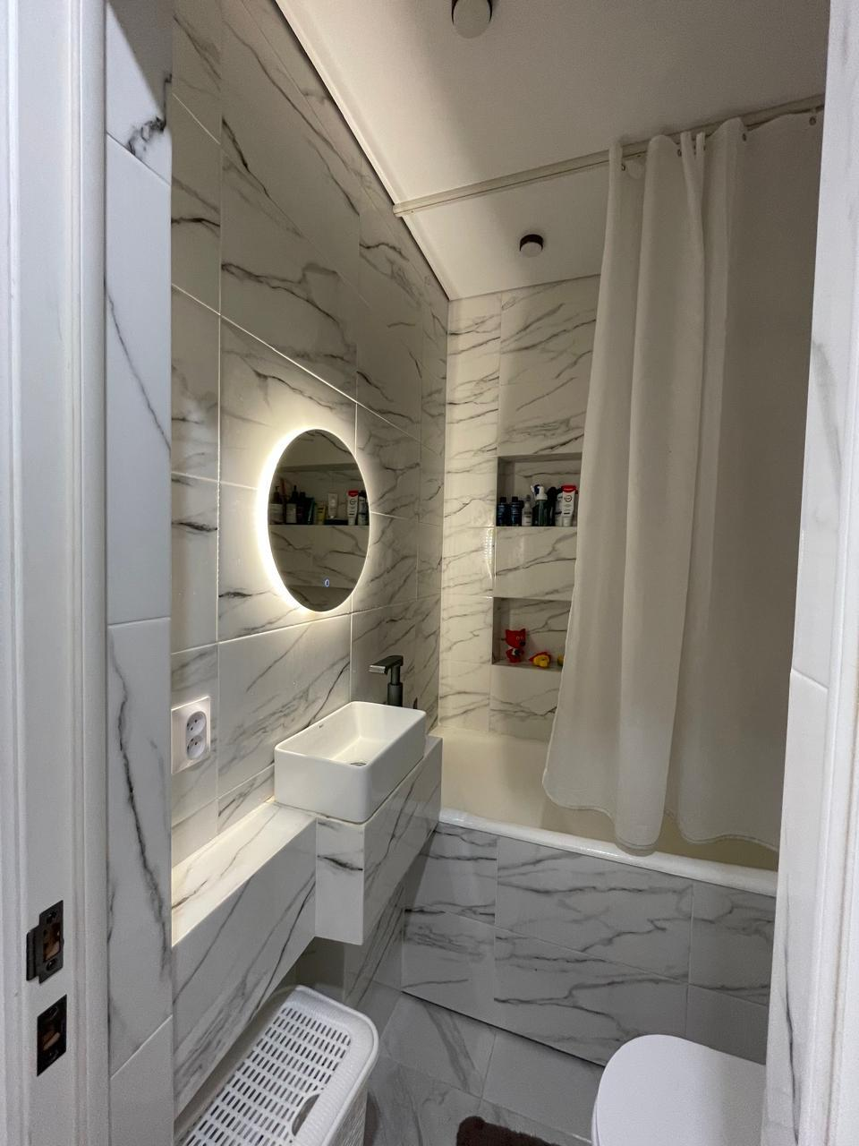 Сан узел совмещенный, в кафеле,