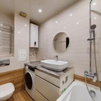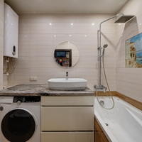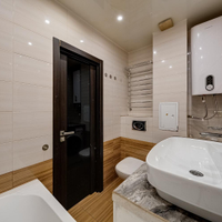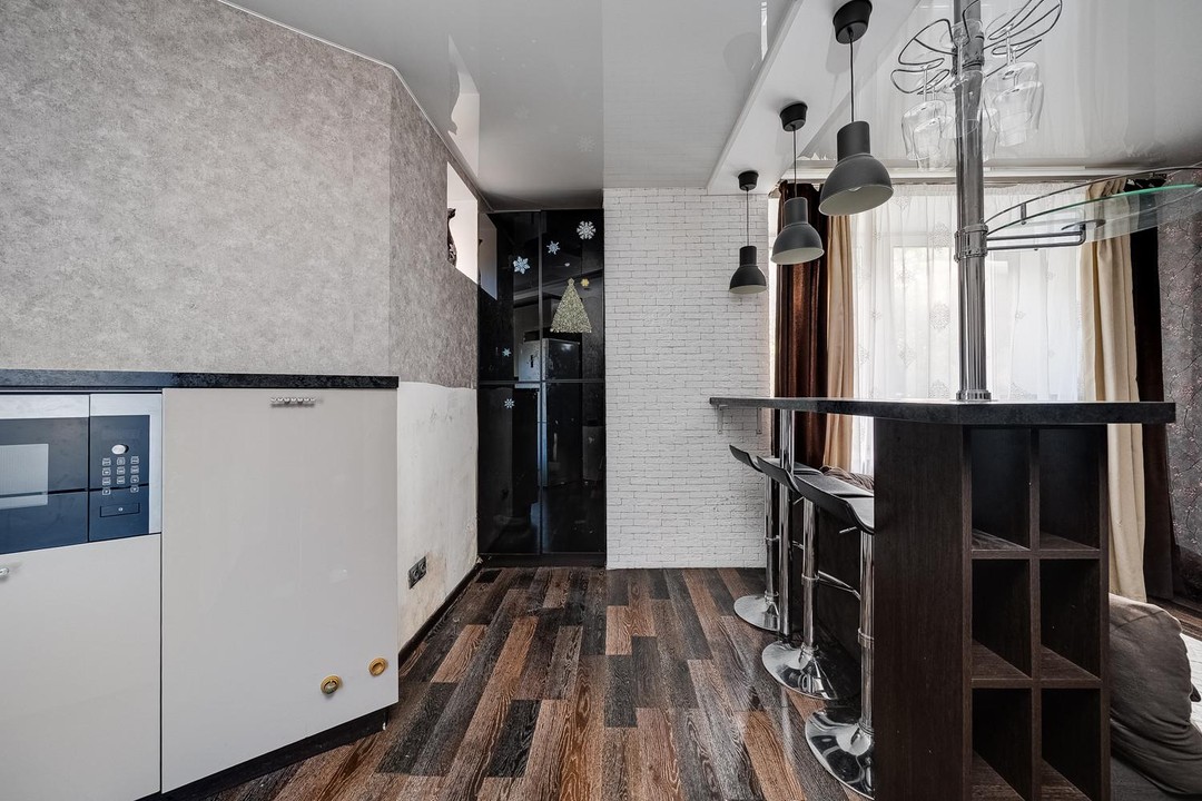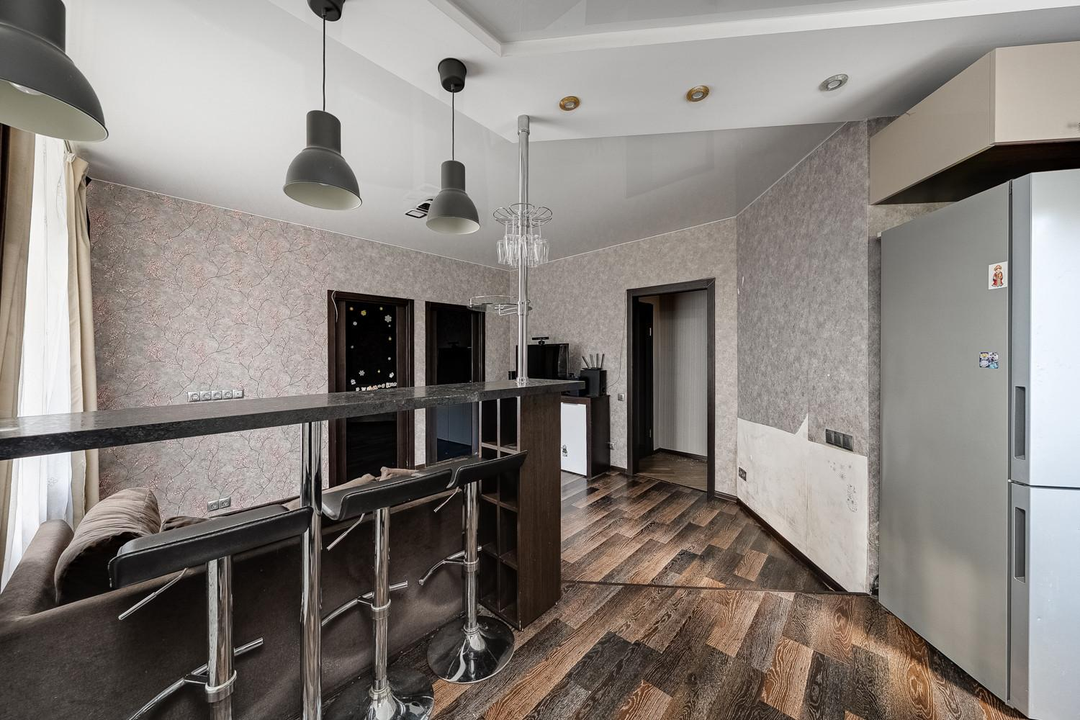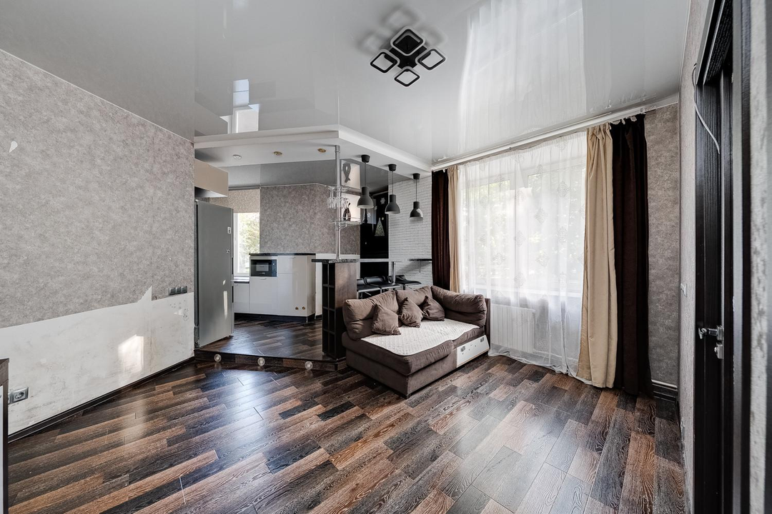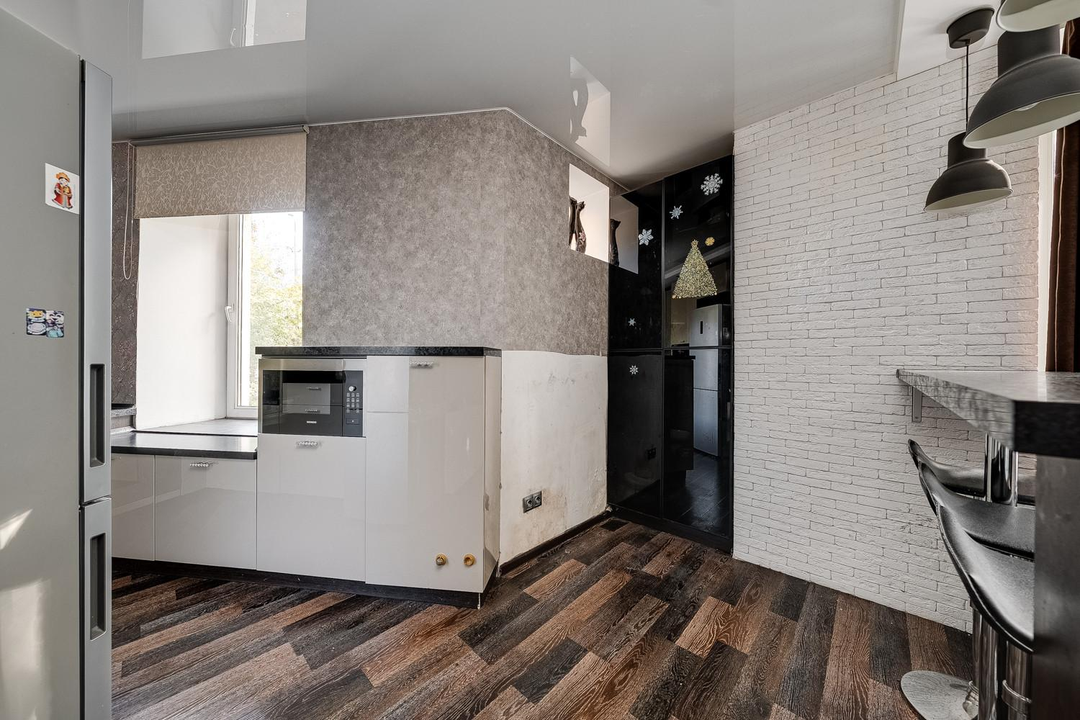 Кухня-гостиная, 2 изолированных спальни, просторная гардеробная и совмещенный санузел. Потолки 3 метра. Теплый кирпичный дом.
