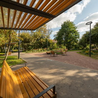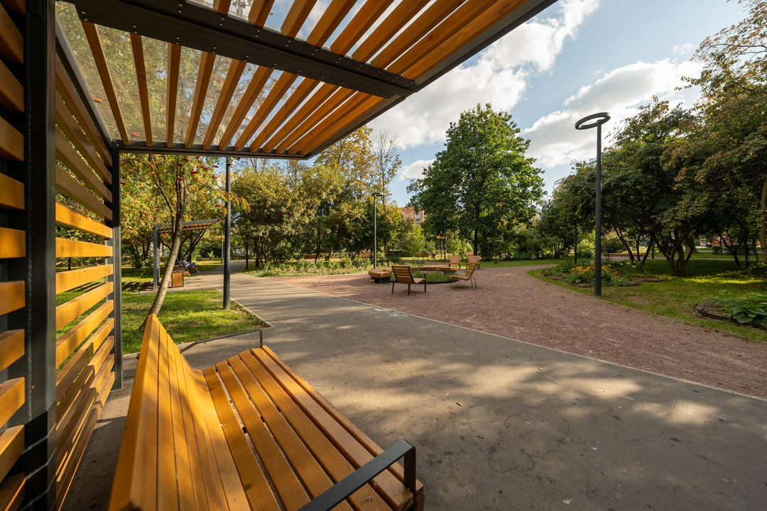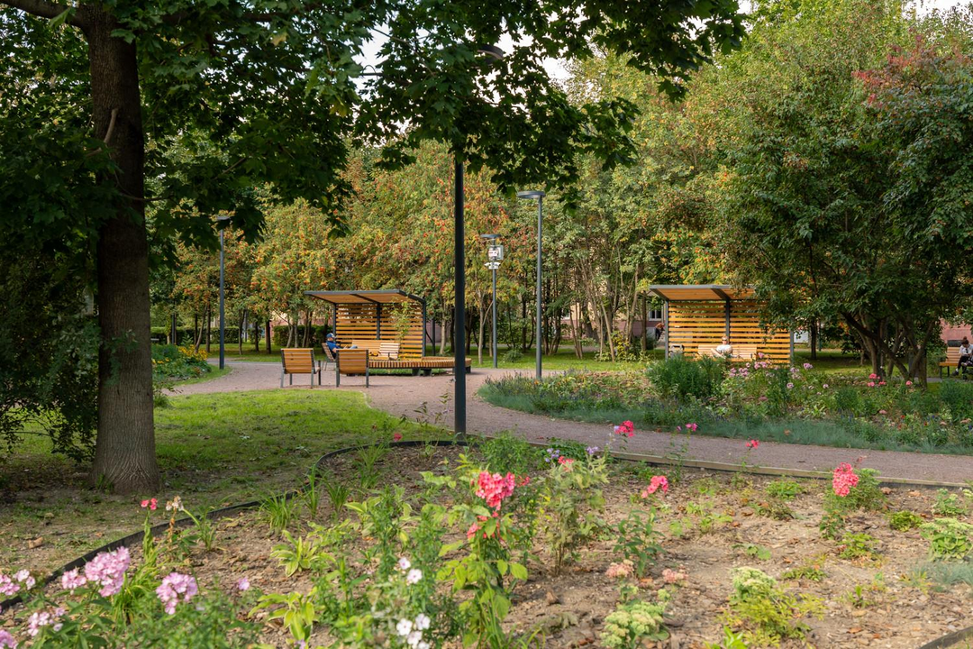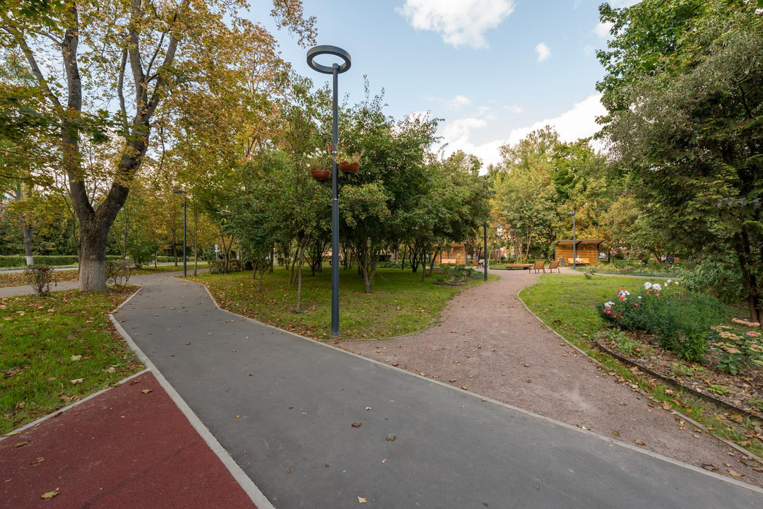Старый обжитой район, утопающий в зелени и парках.