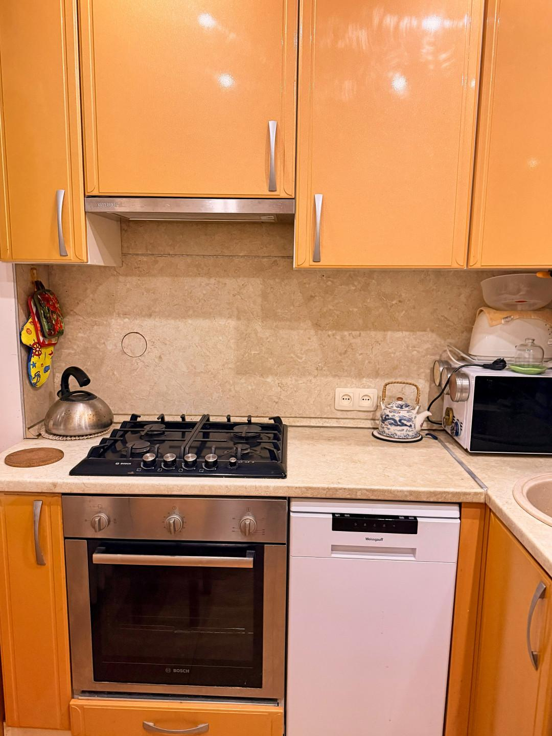 — Компактная, но грамотно организованная и функциональная кухня (5,5 кв. м).