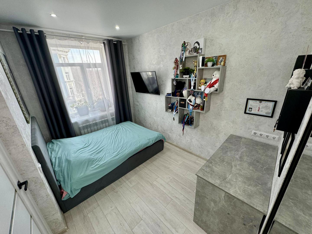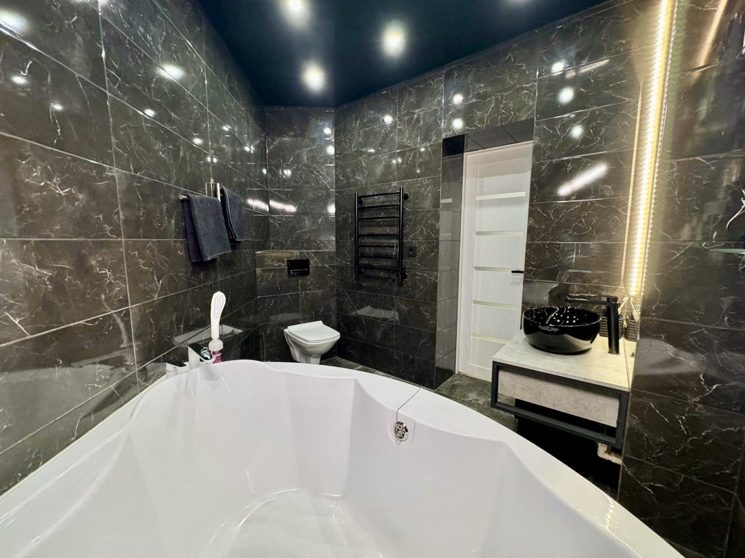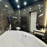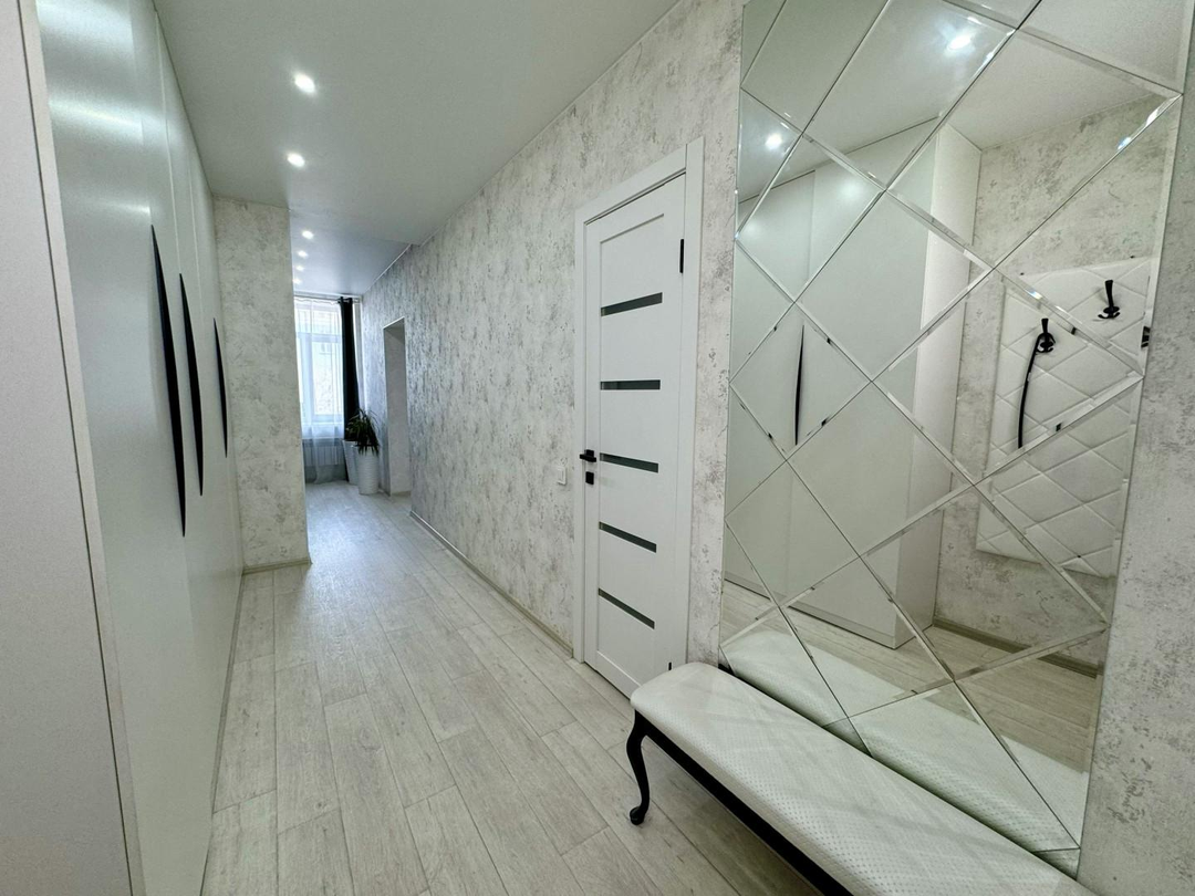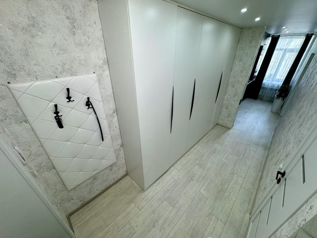 Заменено абсолютно все: трубы отопления сантехника, коммуникации, электрика, полы , установлены натяжные потолки, пластиковые окна, проложена качественная шумоизоляция, а дизайн комнат выполнен в едином стиле.