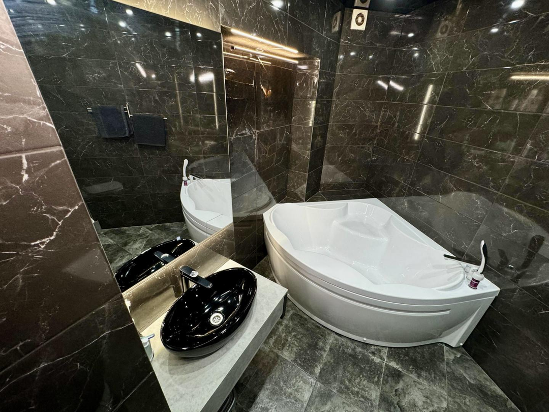 Санузел совмещен, выполнен в современном кафеле.