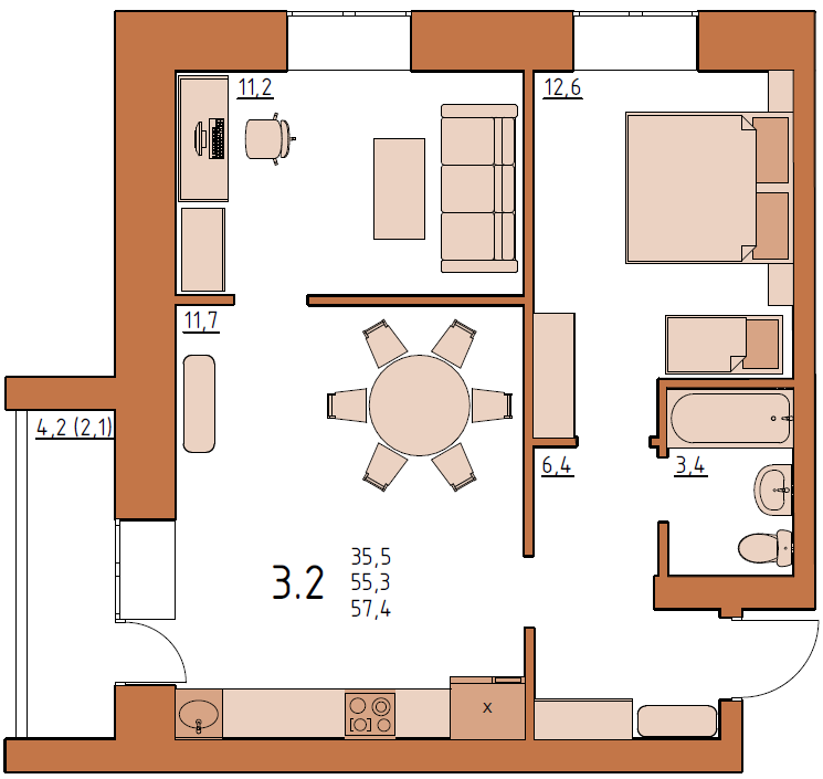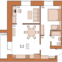 + санузел совмещенный, площадью 3.4 м2.