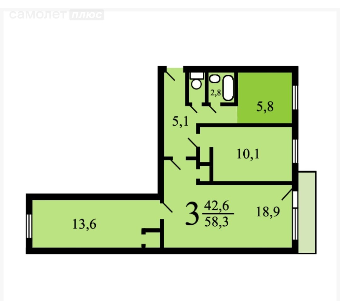 42,6 м²