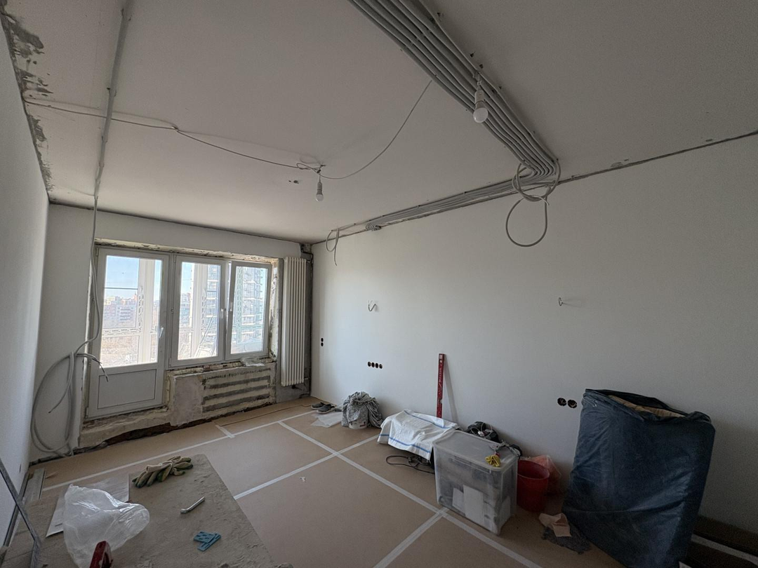 Все черновые работы уже выполнены: электрика, сантехника, заменены стеклопакеты, стены подготовлены под обои/покраску, на полу ламинат, санузел в плитке, выводы и корзины под кондиционеры.