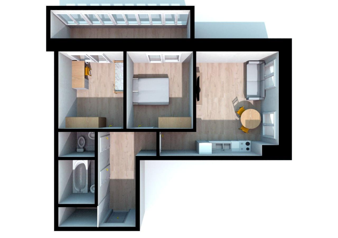 - Площадь – 58,55 кв.м