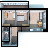 - 2 раздельные комнаты: 11.4 кв.м и 10.5 кв.м.