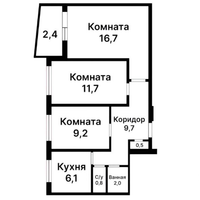 - три комнаты (2 изолированные + одна проходная)
