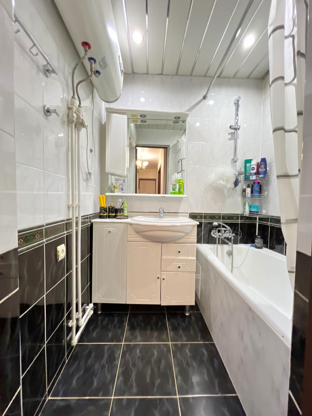 Центральное электричество, отопление, холодная и горячая вода, канализация, в санузле дополнительно установлен водонагреватель.
