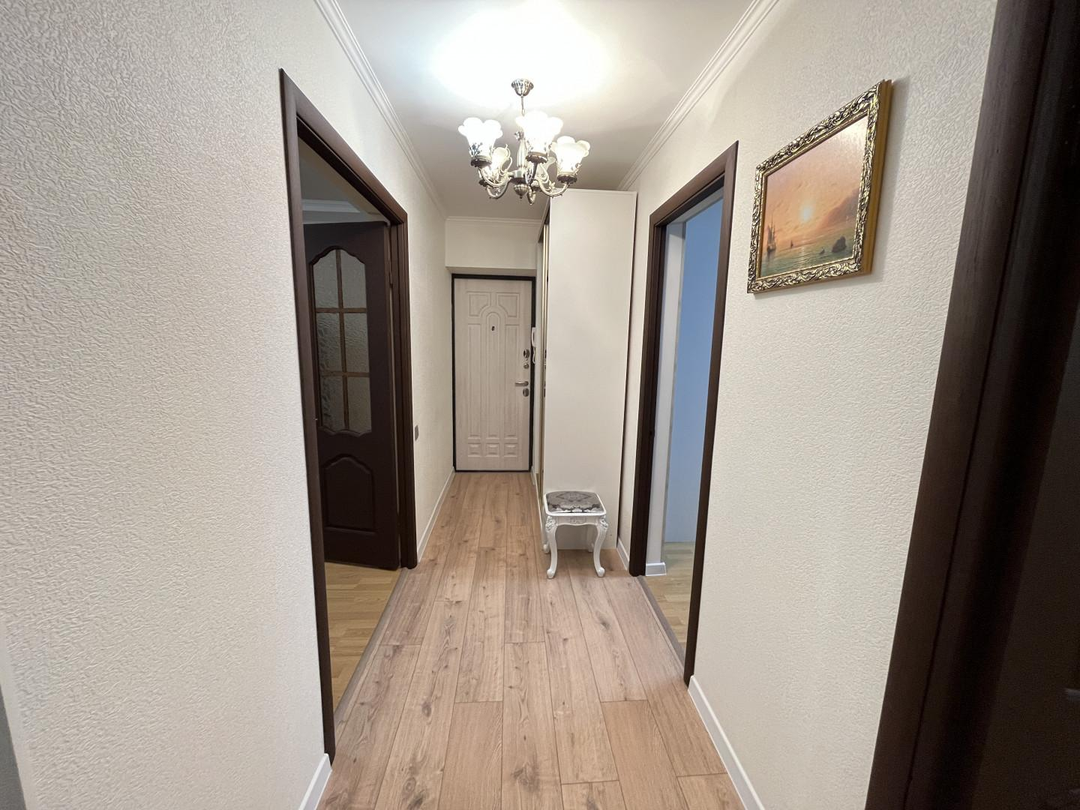 Квартира-распашонка с 6-ти метровой лоджией находится на пятом этаже пятиэтажного кирпичного дома 1999 года постройки. Общая площадь квартиры составляет 58.9 кв.м. В квартире прихожая, коридор, три изолированные комнаты по 16.6/12.4/8.5 кв.м., гостиная и просторная кухня с выходом на застеклённую лоджию, раздельный санузел. Комфортная и удобная планировка квартиры позволяет адаптировать всё под ваши пожелания. Квартира полностью меблирована и готова для проживания, в квартире интернет и телевидение, в ванной комнате тёплый электрический пол. Квартира в середине дома, не угловая, очень тёплая и светлая. При ремонте квартиры использовались качественные материалы, заменена вся проводка, сантехника, годами создавался уют, верно использованы рабочие зоны. Отличный чистый асфальтированный двор, открытая парковка во вдоре для жителей дома, освещение во дворе и в подъездах. Данный вариант идеально подходит для ценителей простора и свободы, в квартире много света и функциональных зон. Все документы готовы для выхода на сделку.