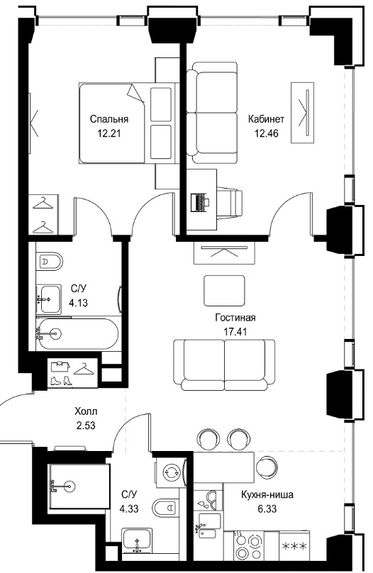 Предлагается квартира общей площадью 59,1 кв.м в ЖК SET.
