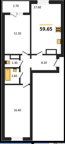 59,6 м²