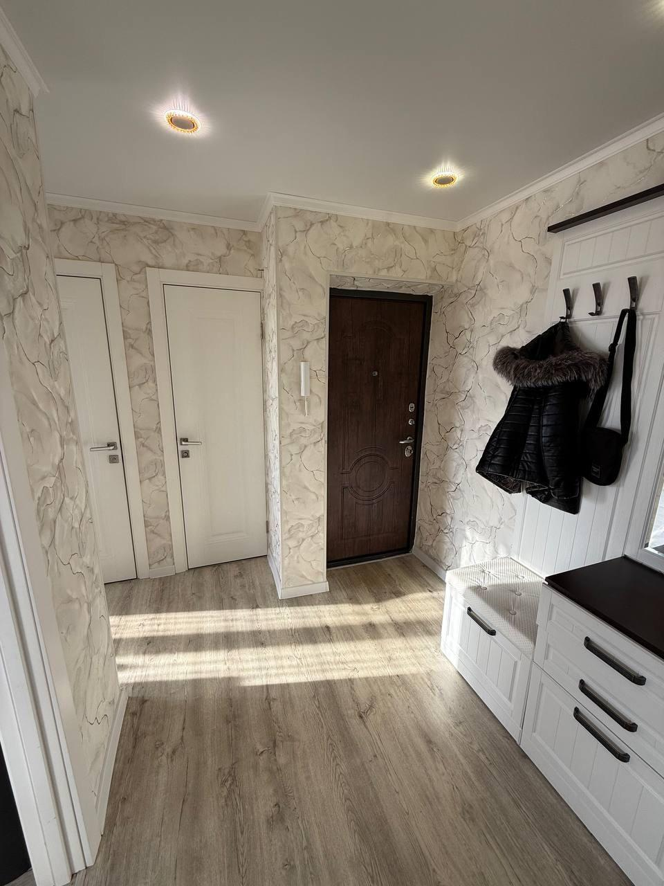 Свежий качественный ремонт, созданный для вашего комфорта, светлый линолеум, натяжные потолки и обои в приятных тонах по всей квартире.