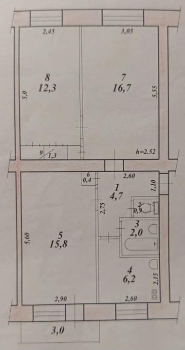 Продаётся трёхкомнатная квартира в центре города площадью 60.3 квадратных метров на удобном третьем этаже пятиэтажного кирпичного дома.