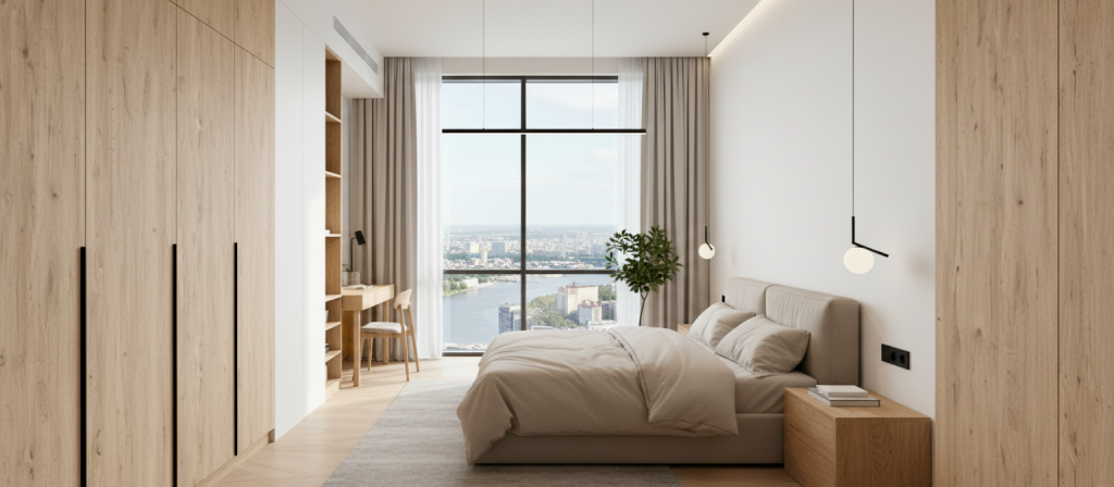 - Видовая - максимум света и воздуха благодаря 21 этажу и 5 окнам которые выходят на 2 стороны - на Юго-Восток и Юго-Запад.