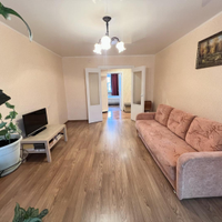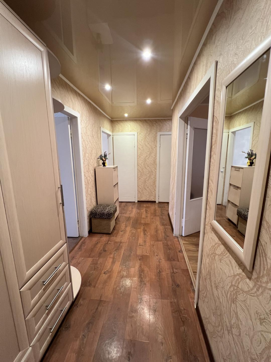 В квартире выполнен ремонт из качественных материалов ! Натяжные потолки, ламинат, линолеум,  пластиковые окна ( кроме гостиной). Вид из окон во двор!!! Туалет , ванная отделка: пластиковые панели. Счетчики на , ХВ и ГВ, газ.