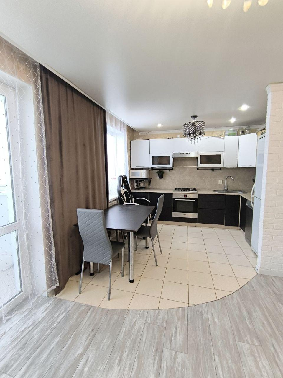 Просторная кухня площадью 8 кв. м., полы с подогревом (плитка).