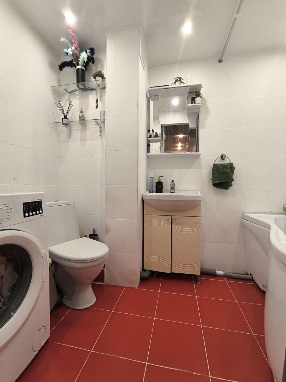 Санузел совмещенный в плитке, полы с подогревом.