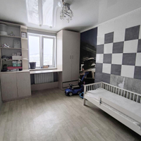 Остается новым собственникам: кухонный гарнитур, шкаф купе, в детской комнате - стол и шкаф.