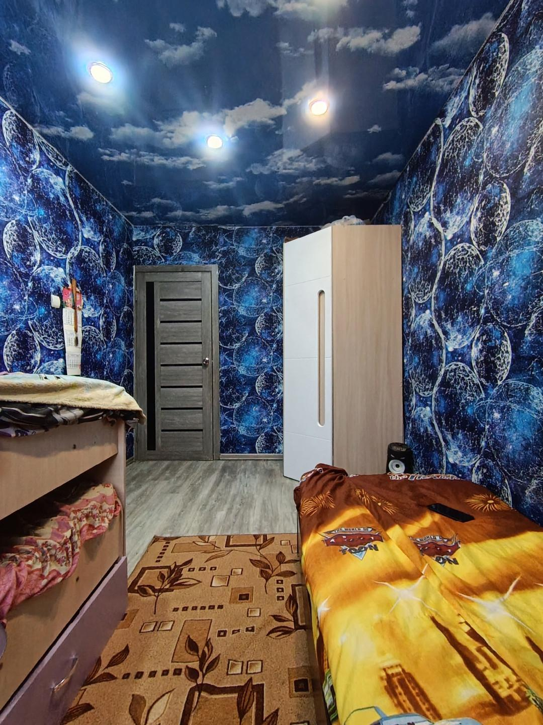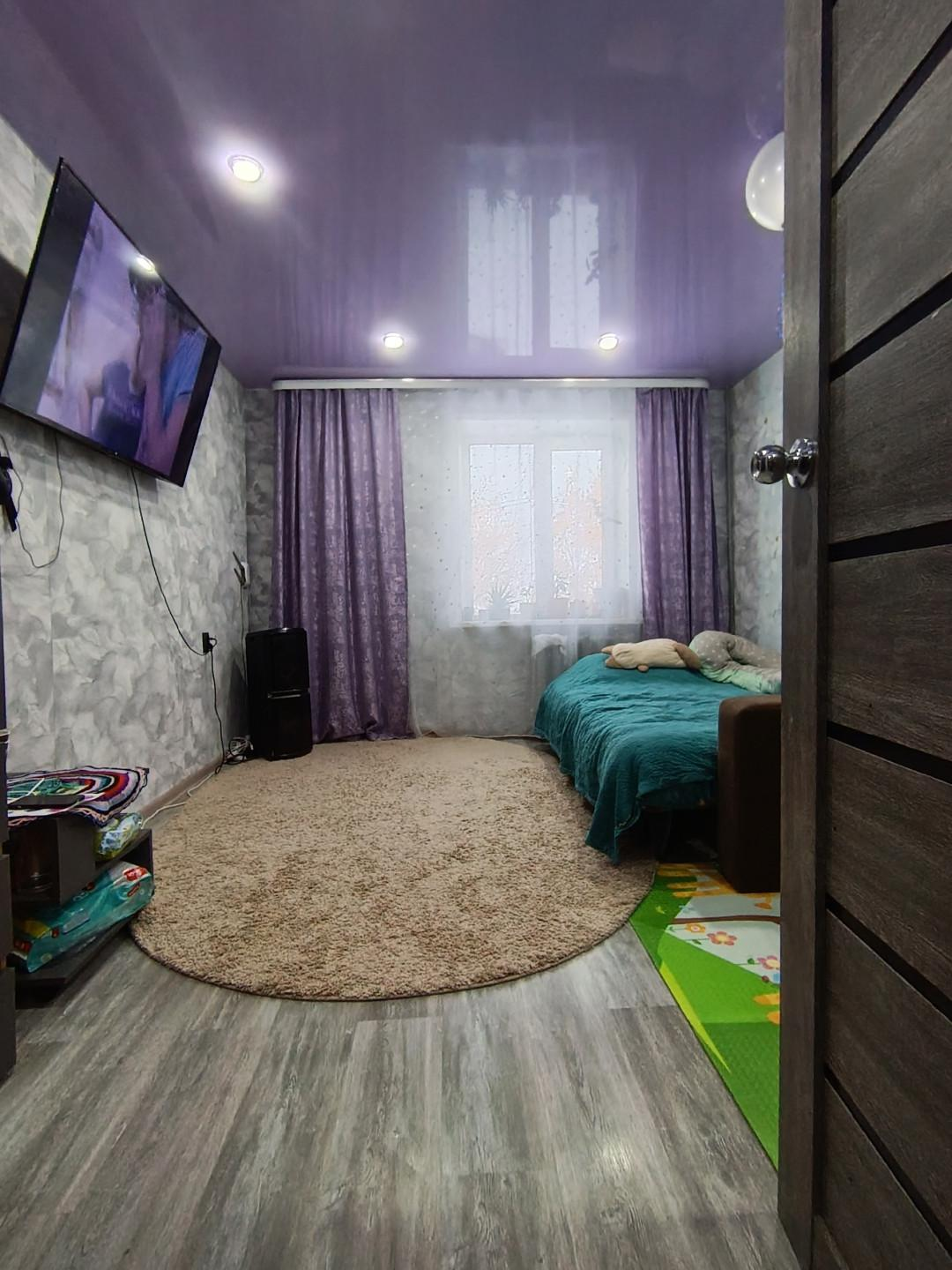 В квартире сделан ремонт: установлены натяжные потолки, на полу уложен ламинат. Все комнаты изолированные, санузел раздельный, что обеспечивает дополнительный комфорт. Просторный коридор и большая кухня создают ощущение свободы и функциональности.