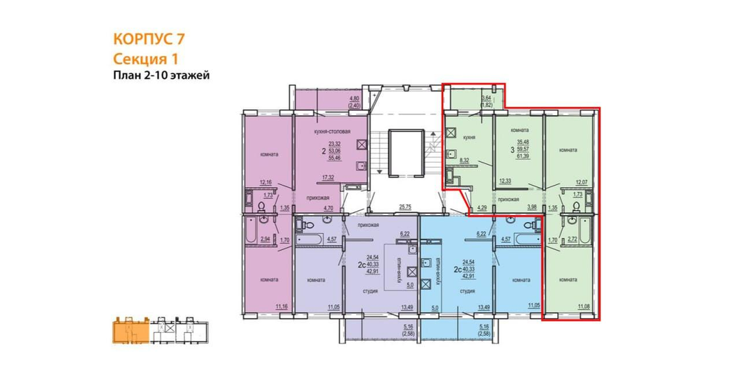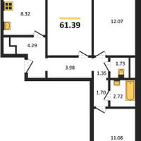 В ЖК КОНФЕТТИ предлагается в продажу 3-х комнатная квартира, общей площадью 61,39 кв.м.