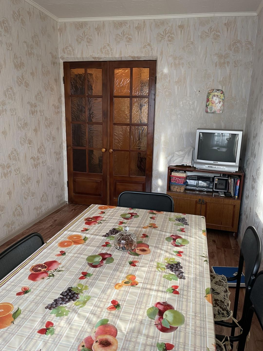 о квартире:квартира расположена на 5 этаже 5-и этажного домав 2010 году в квартире был сделан капитальный ремонт:полностью поменяны полы, выровнены стены, установлены пластиковые стеклопакеты,раньше отопление было внутри стен сейчас трубы выведены наружу и установлены радиаторы.полностью заменены все трубы включая канализационную на пластиковые.установлены новые межкомнатные двери и входная.балкон застеклён с выносом пластиковыми раздвижными окнами,в квартире сделана и узаконена перепланировка из комнаты рядом с кухней сделана гостиная-столовая.сейчас квартира состоит из трёх комнат+ гостиная с кухней + раздельный с/ув коридоре есть кладовка которая эксплуатируется под хранение домашних заготовок и хозяйственных мелочей.пол во всей квартиры -линолеум