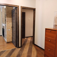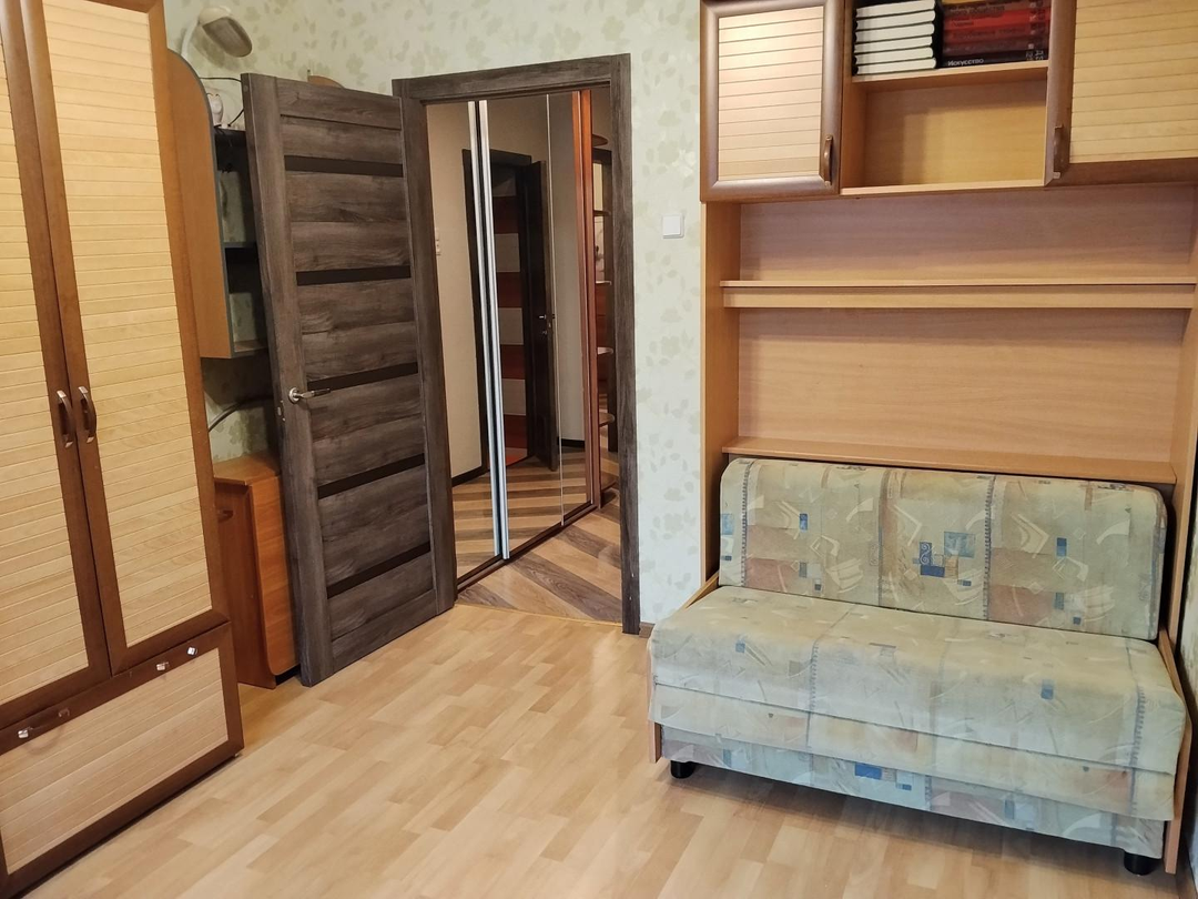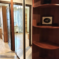 Новым собственникам остаются все предметы обстановки, отраженные на фотографиях (встроенные, платяные и книжные шкафы, два дивана (расположены в двух маленьких комнатах), телевизор и электрокамин в зале, накопительный бойлер на 150 литров в туалете).