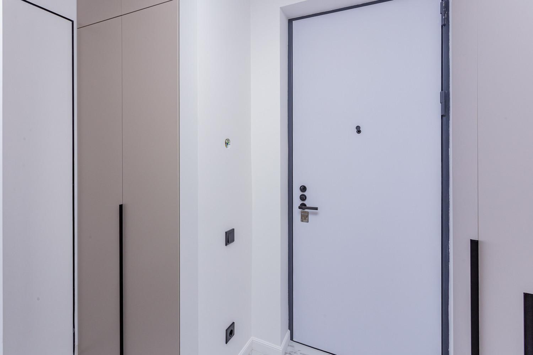 *В прихожей встроенный шкаф для верхней одежды и обуви, пол керамогранит;