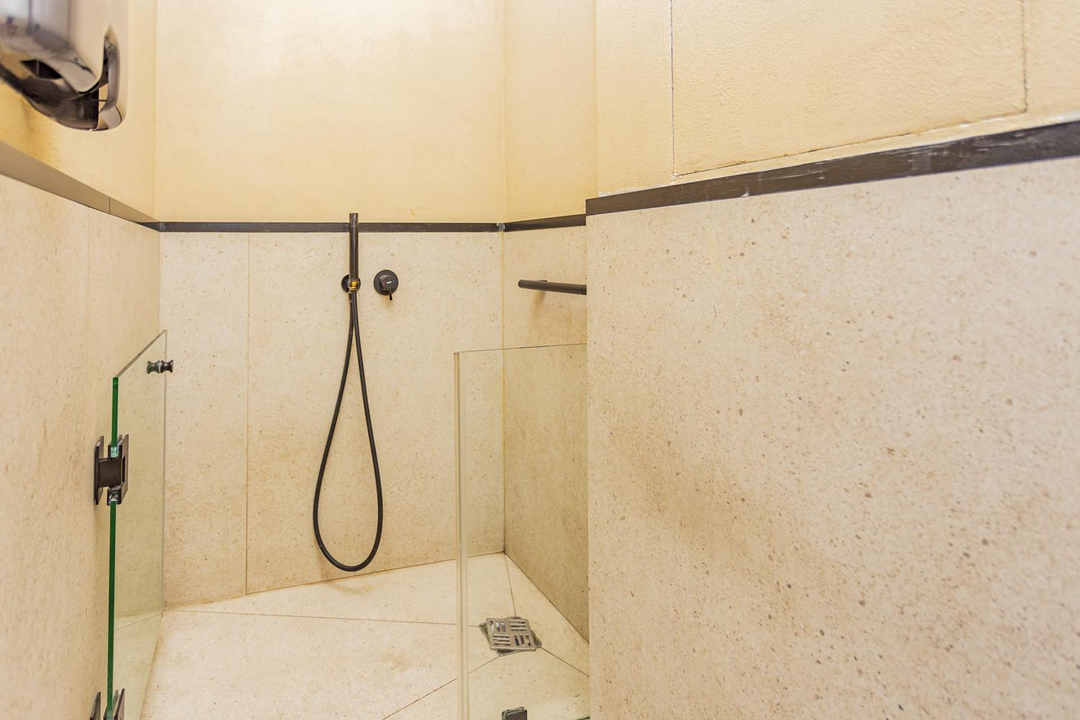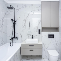 *Второй санузел (5 кв.м)совмещенный, с отделкой керамогранит, сантехника вся в комплекте, душ, пол с подогревом.