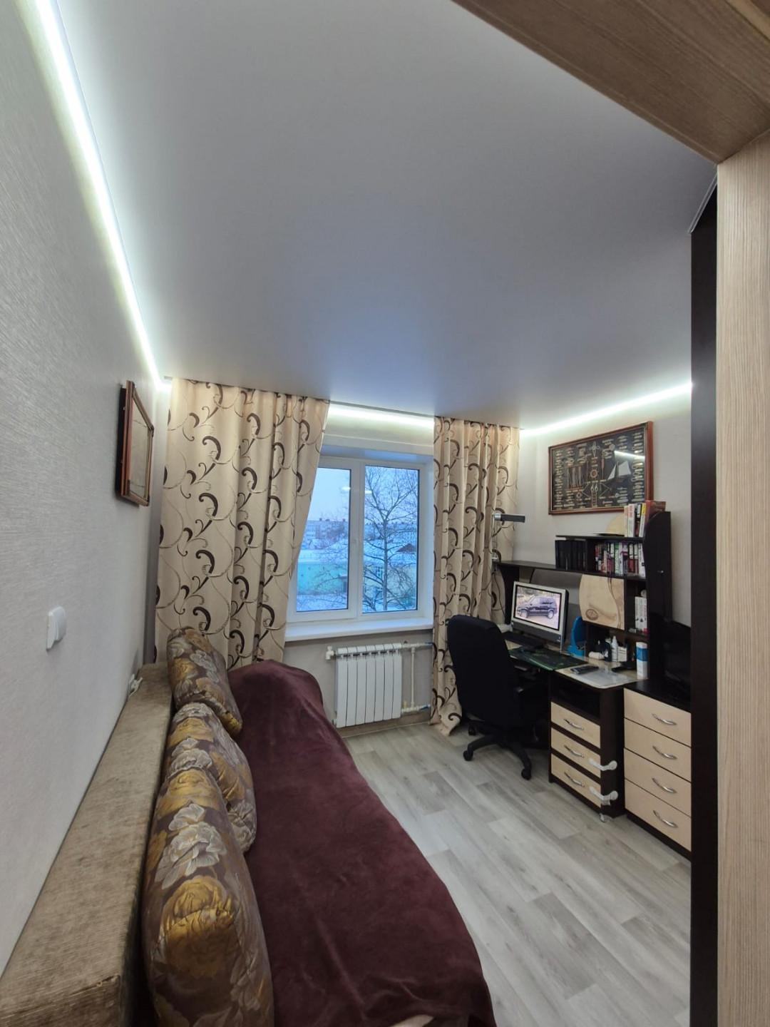 Продается трехкомнатная квартира. 138 серии на 4 этаже. Светлая, теплая, в середине дома. Все рядом: школа, садик, магазины, заправка, оптовая база, автобусные остановки, почта, Сбербанк, торговые центры и т.д. Перед домом детская и спортивная площадка. За домом детский садик . В квартире свежий косметический ремонт, комнаты раздельные, окна ПВХ, лоджия 6м, застеклена ПВХ, удобный и вместительный загашник (мини гардеробная).В ванной теплые полы, все трубы заменены, зеркало с подсветкой и подогревом. Вся новая сантехника. Во всех комнатах встроенная мебель, а так же встроенная кухня, установлен фильтр для воды, водонагреватель, сенсорная подсветка вдоль всего рабочего стола кух.гарнитура. В квартире установлены все новые межкомнатные двери, натяжные потолки, светлые обои .Летом 2025 года установлен кондиционер. Свои парковочные места за шлагбаумом на две машины, в подарок!!! Стоянка бесплатная, скидываемся только зимой на расчистку.