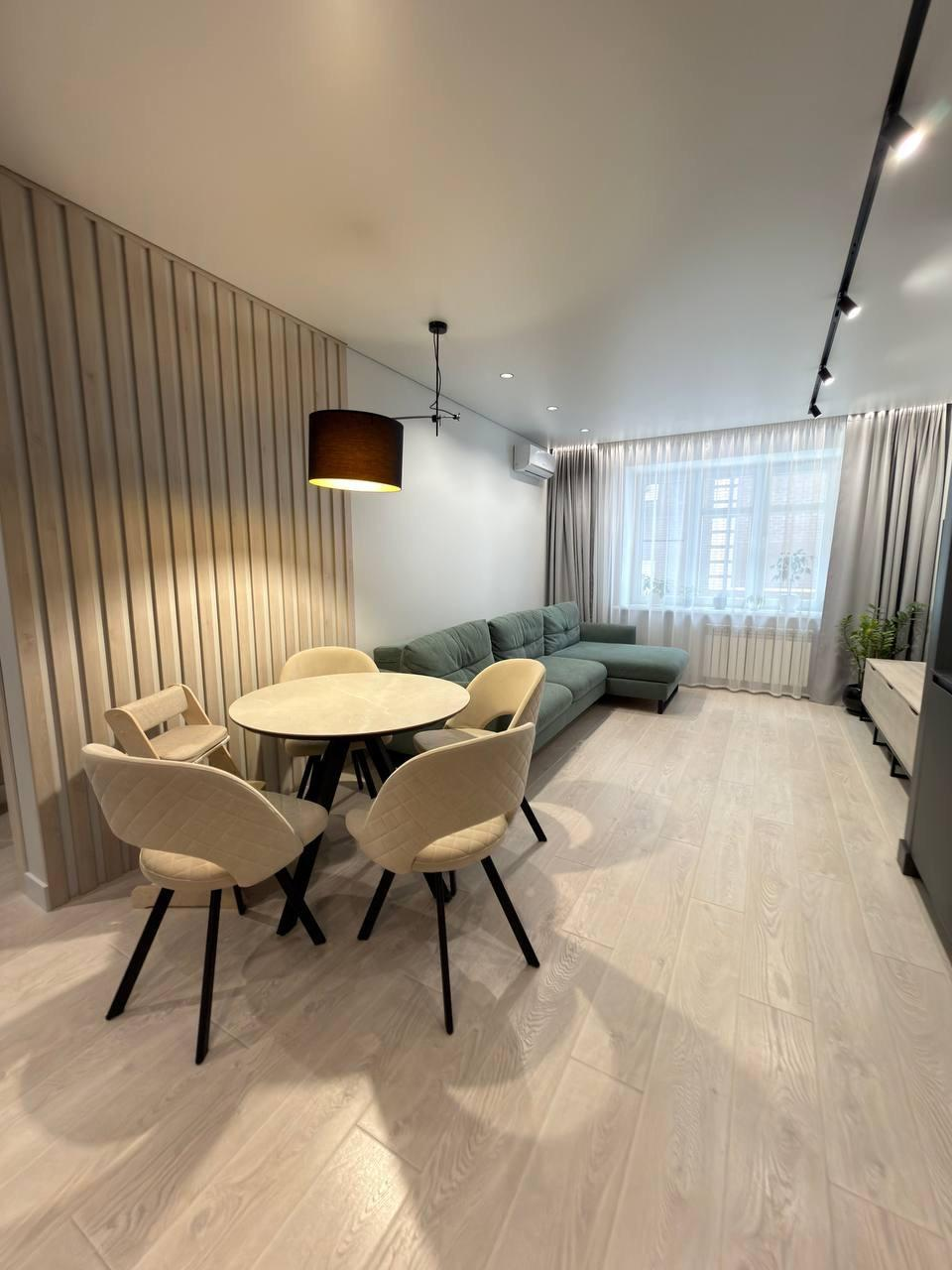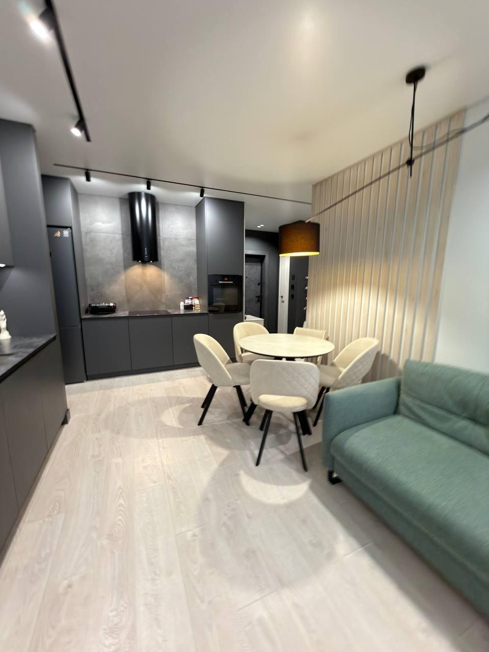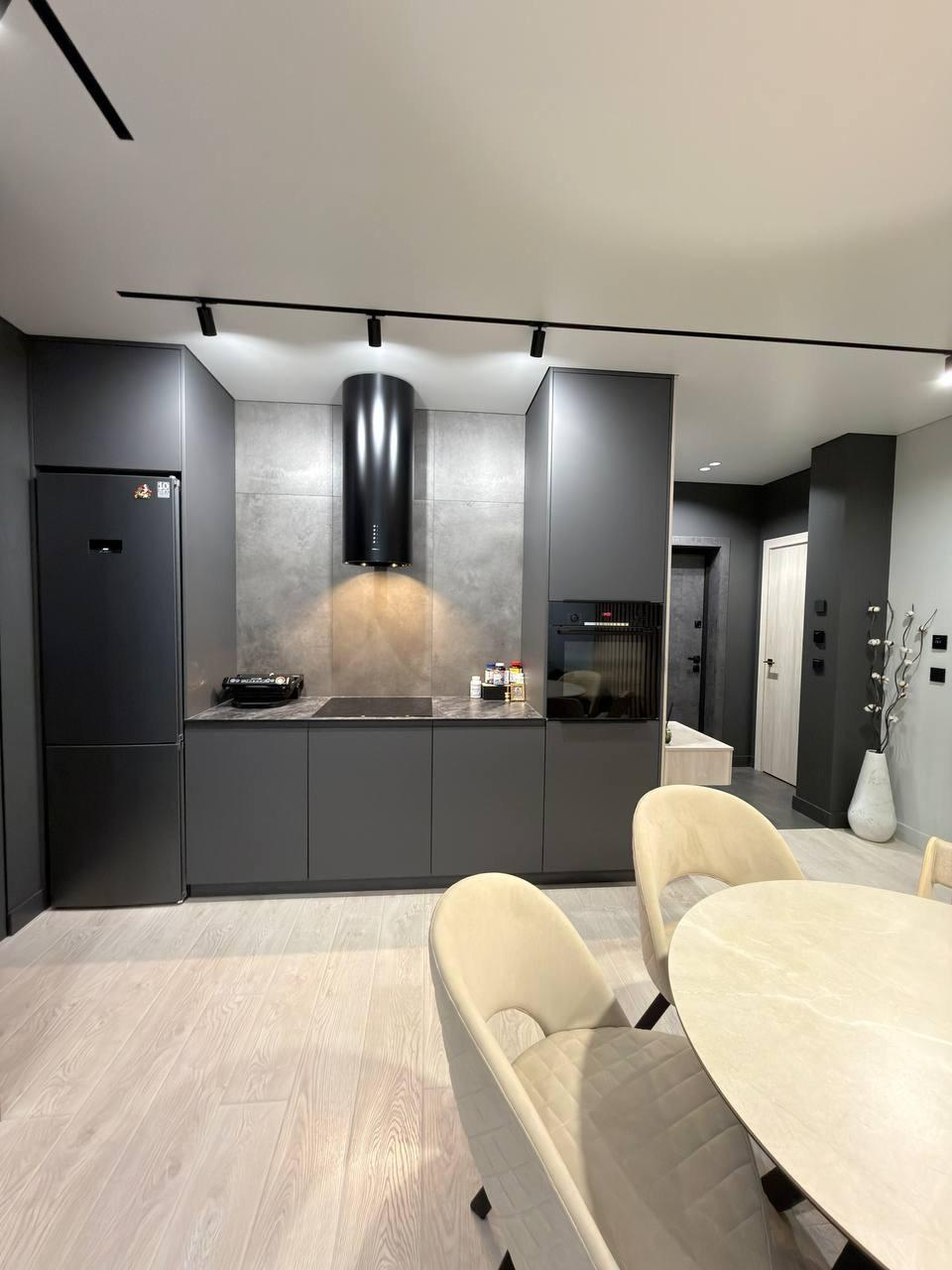 В квартире выполнен ремонт по дизайн-проекту с применением дорогих качественных материалов, мебели и техники.