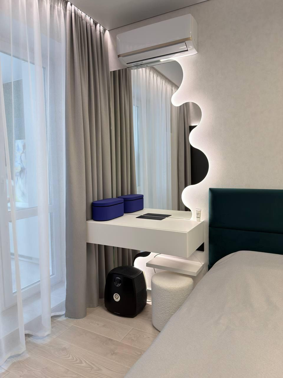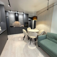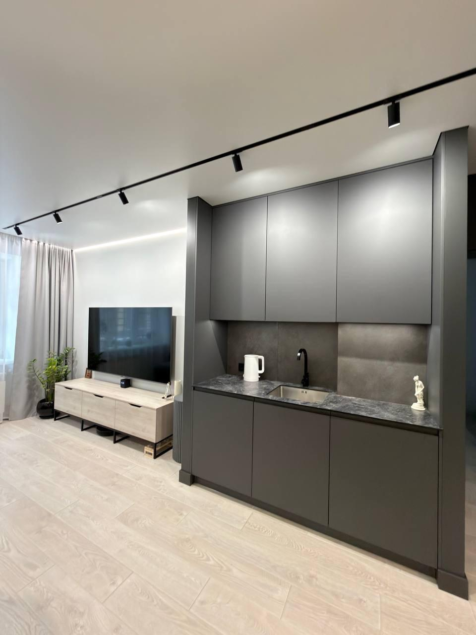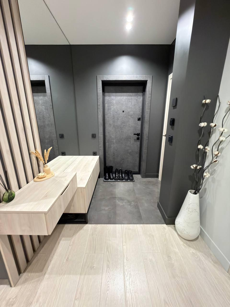 В квартире выполнен ремонт по дизайн-проекту с применением дорогих качественных материалов, мебели и техники.