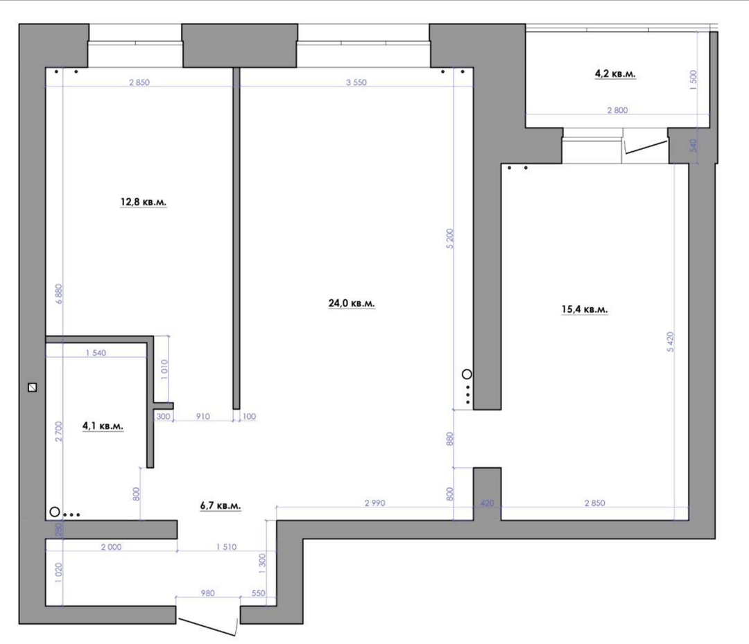 Планировка квартиры очень удобная и эргономичная:Детская (по необходимости нового собственника легко переоборудуется в кабинет) - 12.8 кв.мКухня -гостиная - 24 кв.мСпальня - 15,4 кв.мУтепленная лоджия - 4,2 кв.мСовмещенный санузел - 4,1 кв.мГардеробная