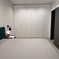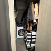 В гардеробной отлично помещается стиральная машина и бойлер для нагрева вода , есть возможность установки и сушильной машины.