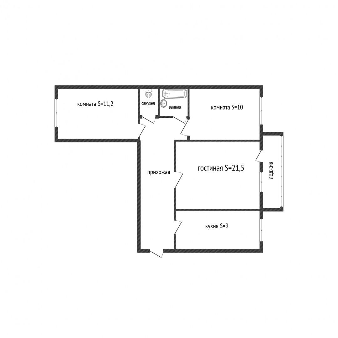 Общая площадь квартиры составляет 60,1 м2, три просторных комнаты, кухня 9 м2, удобная планировка. Раздельный санузел, просторная лоджия. Во всей квартире установлен новый стеклопакет, в том числе полностью застеклена лоджия. В зимний период времени в квартире очень тепло.