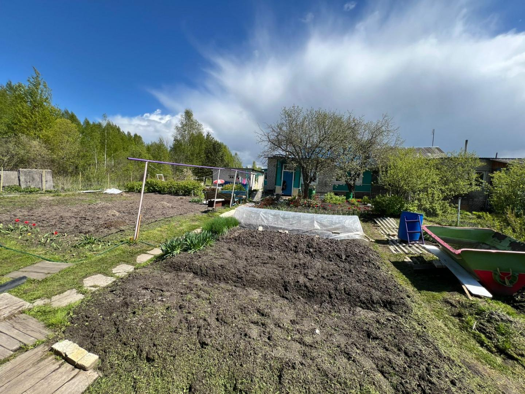 Земельный участок(плодородная земля) полностью разработан, каждый год ведутся посадочные работы. Много цветущих растений, плодово-ягодных саженцев (слива, смородина, крыжовник, малина) Просто одна красота. Рядом Лесополоса