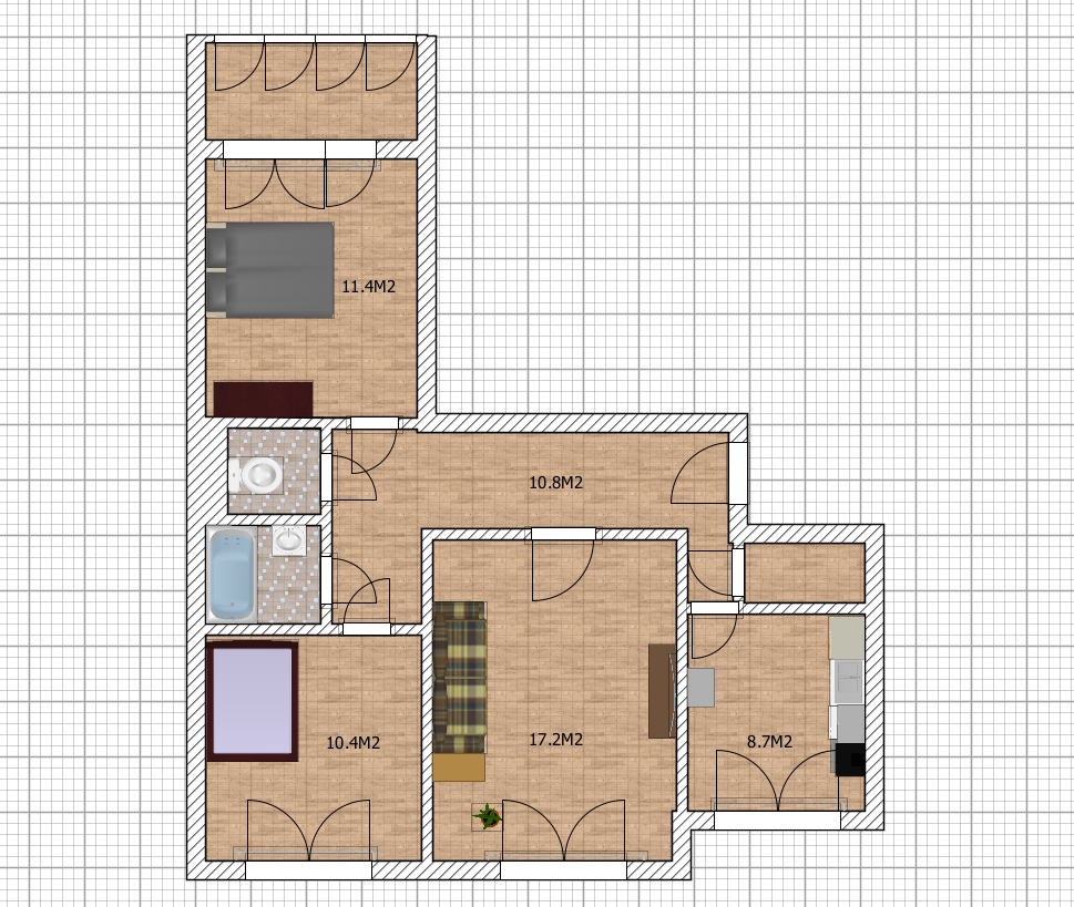 Квартира имеет удобную планировку, общей площадью 63.30 кв.м, включающую 3 комнаты, просторную кухню площадью 8,7 кв.м и вместительную кладовую.