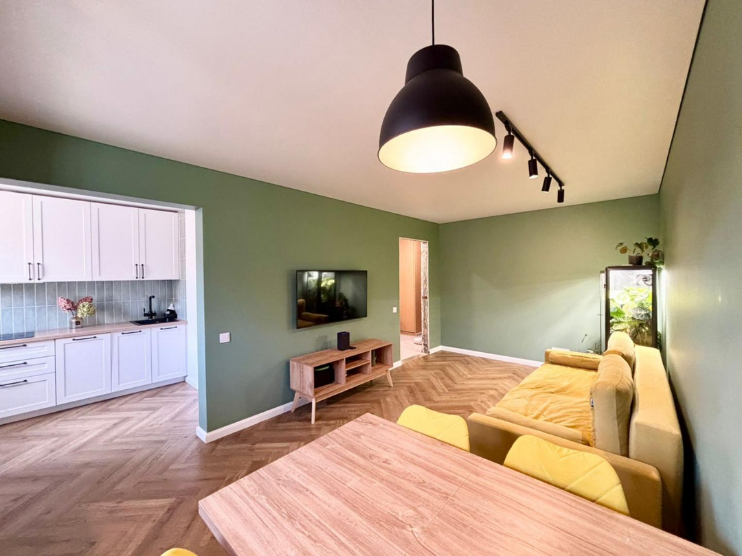 * Идеально ровные поверхности: Во всей квартире выровнены стены и сделана стяжка пола (наливные полы).