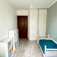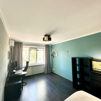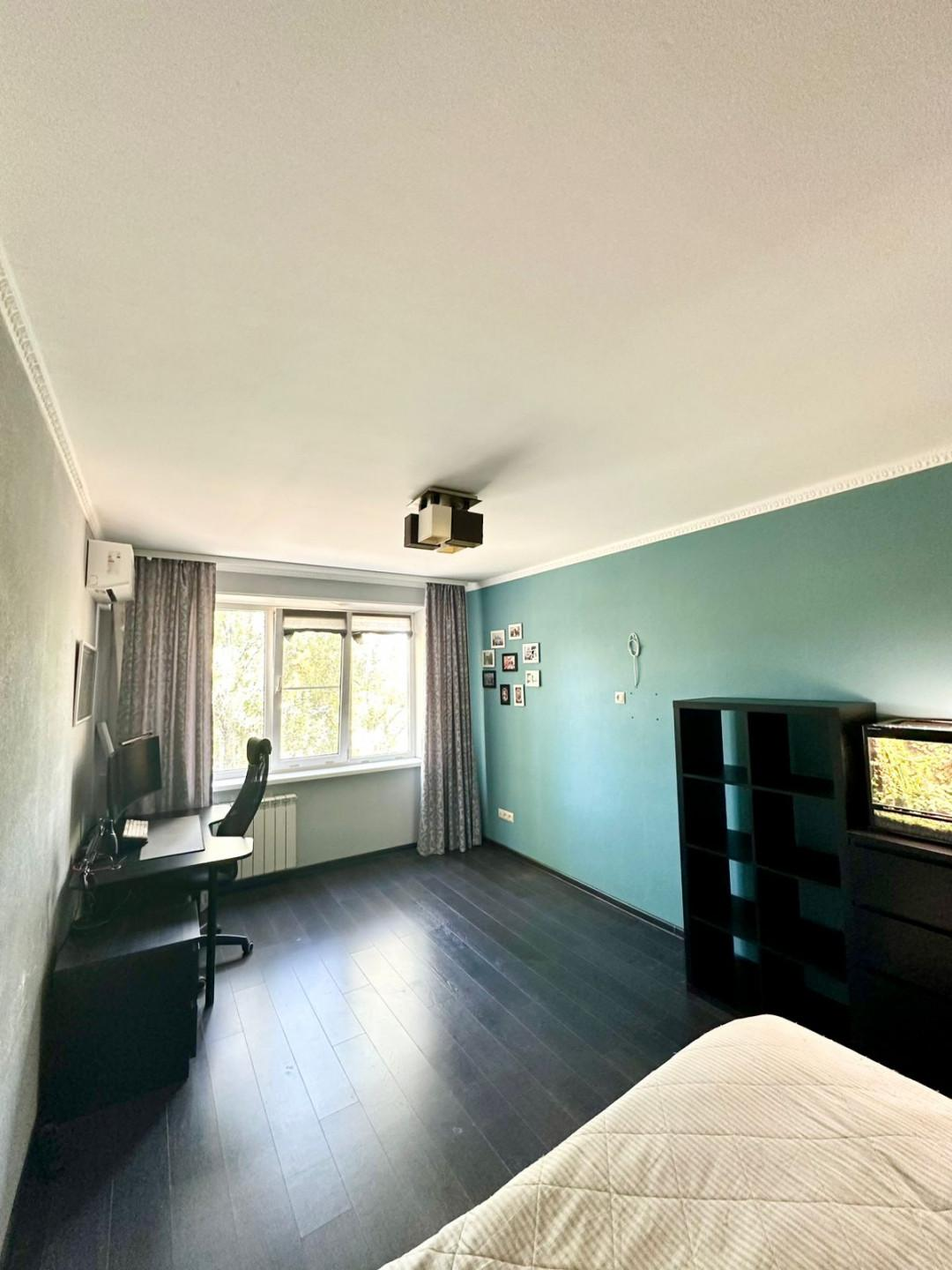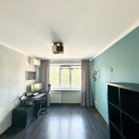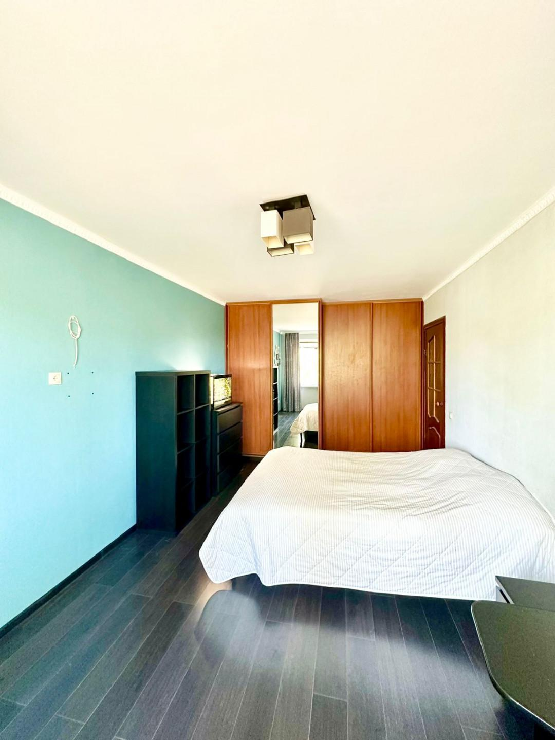 * Спальня: Уютная комната с ламинатом, обоями и побеленным потолком. Установлен новый кондиционер VeKo, есть встроенный шкаф.