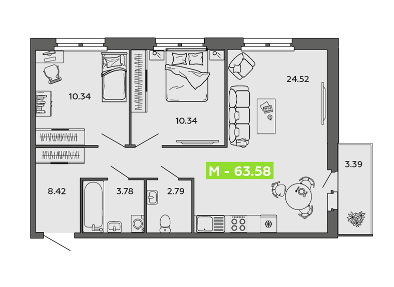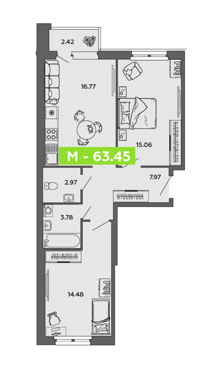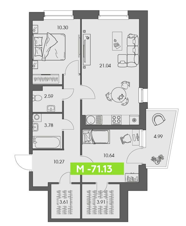 Диапазон цен в зависимости от планировки : 7 950 000 - 10 900 000 руб.