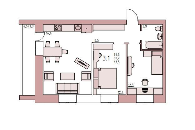 3-комнатная 63.6 м2 в ЖК undefined корпус null этаж 3