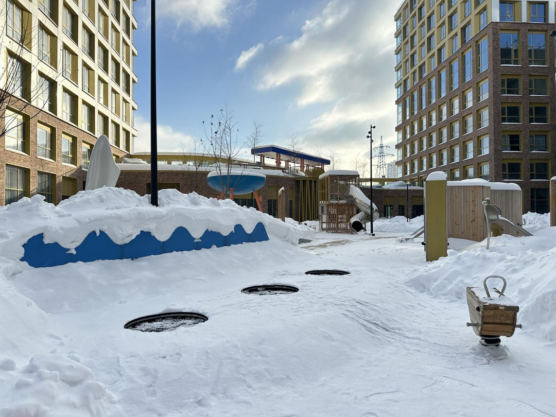 • закрытая охраняемая территория без машин;