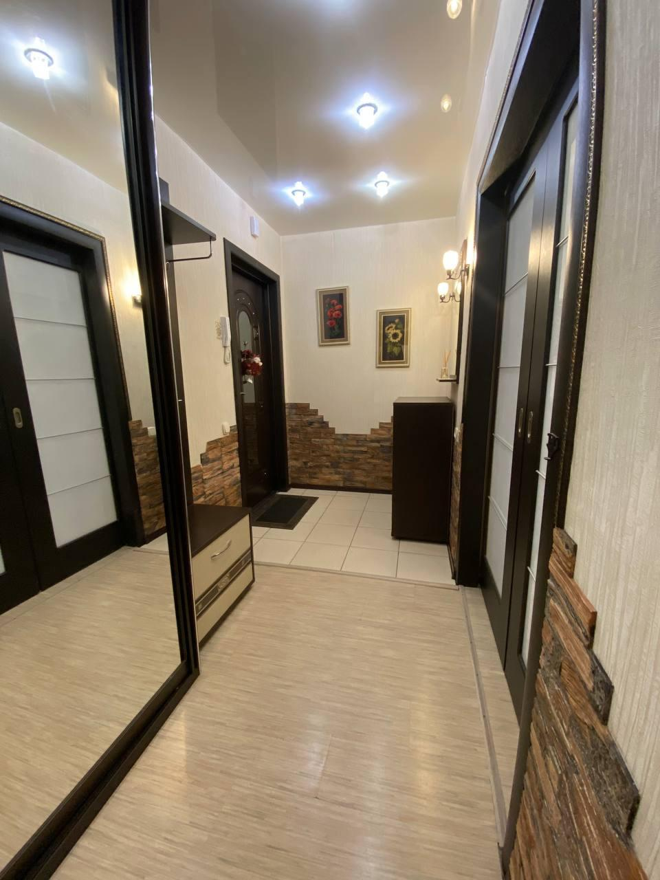 Особенности квартиры:Дизайнерский ремонт: Квартира оформлена в современном стиле с двухуровневыми потолками, стенами с шелкографией, пластиковыми окнами, обеспечивающими хорошую тепло- и звукоизоляцию, а также керамогранитом в ванной комнате и санузле.Функциональность: Имеются раздвижные двери в гостиной и раздвижное ограждение в ванной комнате для удобства и экономии пространства.Вид: Из окон открывается вид на двор и улицу, а балкон застеклен и утеплен.Удобства: Раздельный санузел.