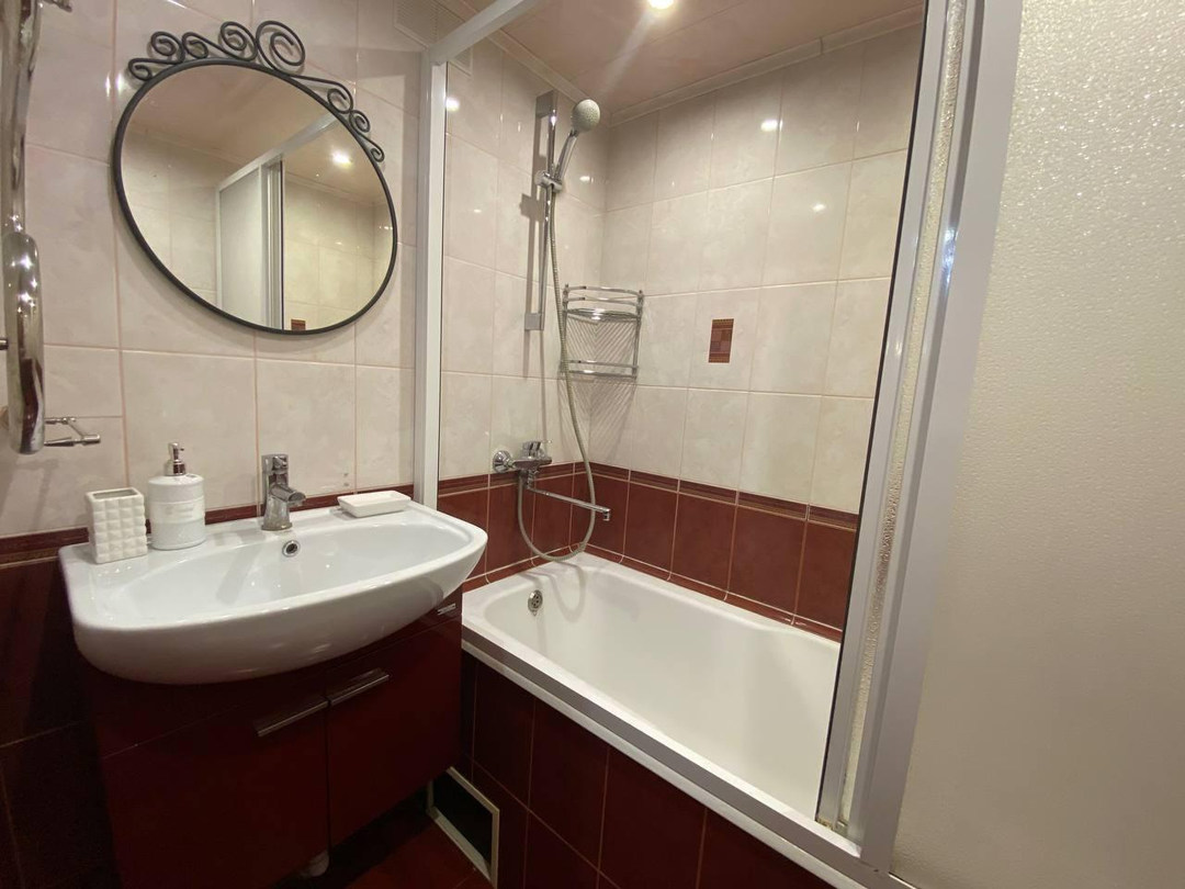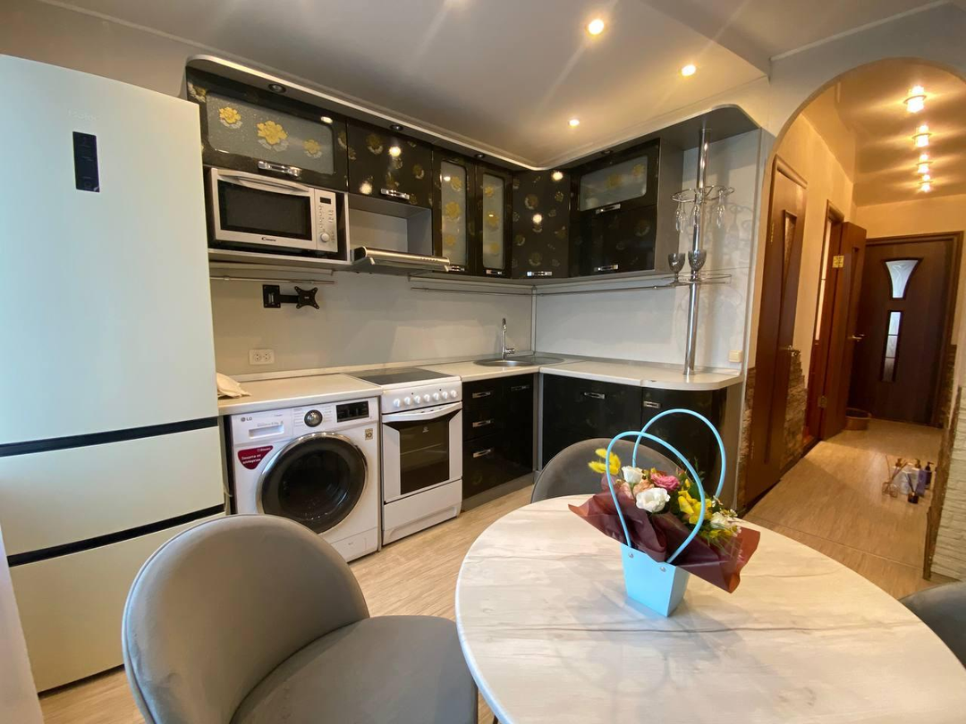 Хорошая звукоизоляция, чистый подъезд и бесшумный лифт. Благоустроенная придомовая территория с детской площадкой и парковочными местами. Развитая инфраструктура района с магазинами, школами, детскими садами, поликлиниками и остановками общественного транспорта.