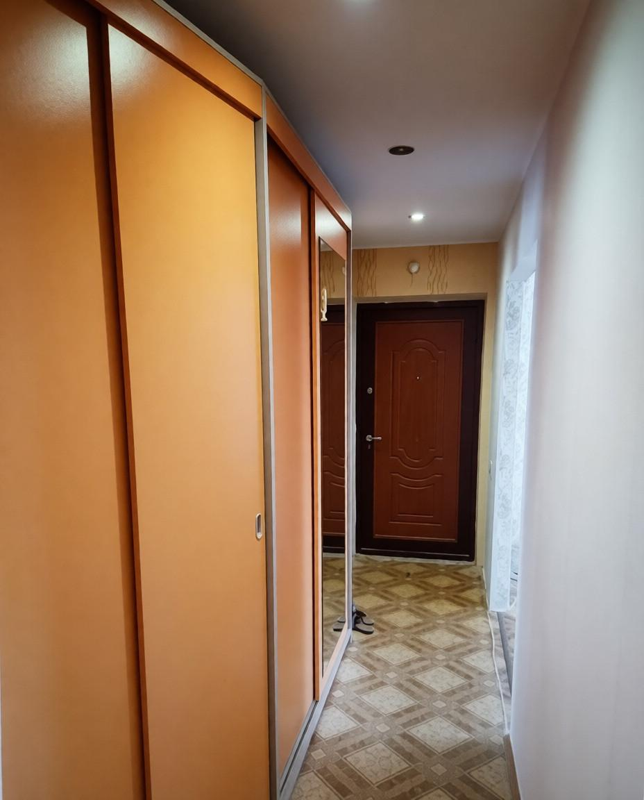 Вместительный коридор со шкафами-купе для удобного хранения вещей.
