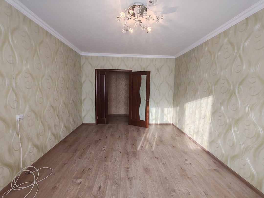 Качественный ремонт: хорошие шпонированные межкомнатные двери, ламинат в комнатах, линолеум на кухне, пластиковые окна, окрашенные потолки.