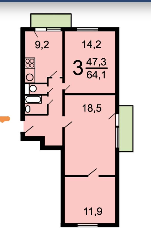 Комнаты хорошей правильной формы, имеется таеже застекленный балкон, просторная кухня 9 кв. м.