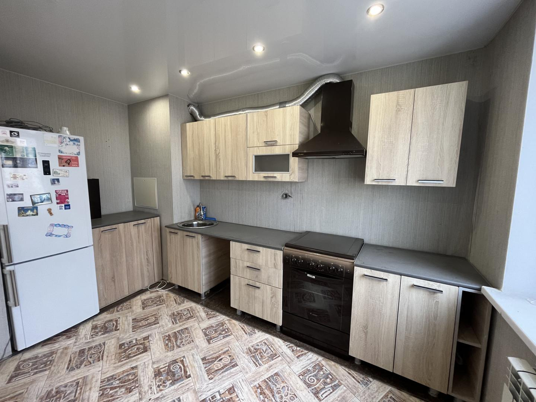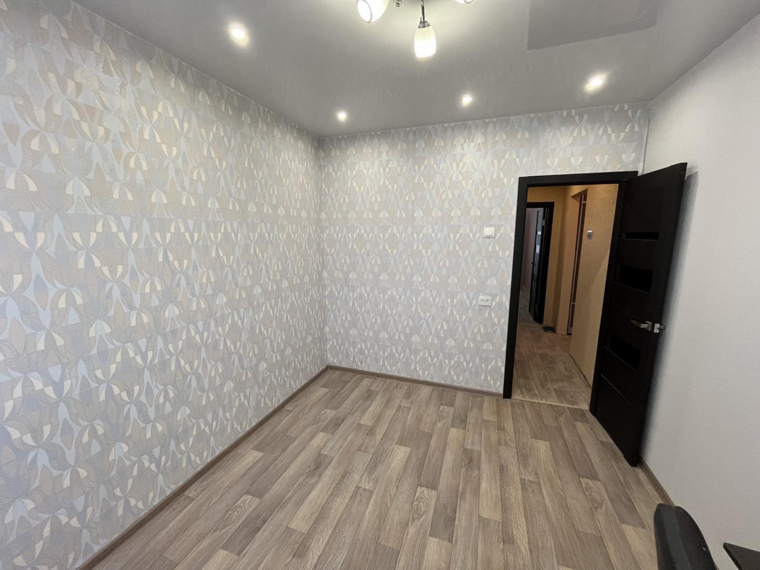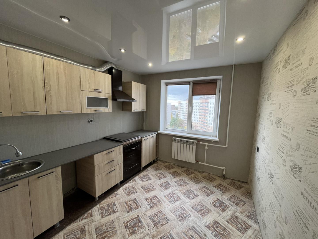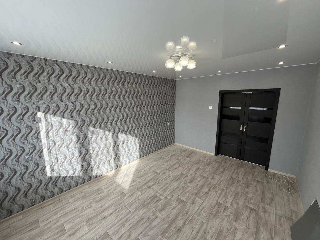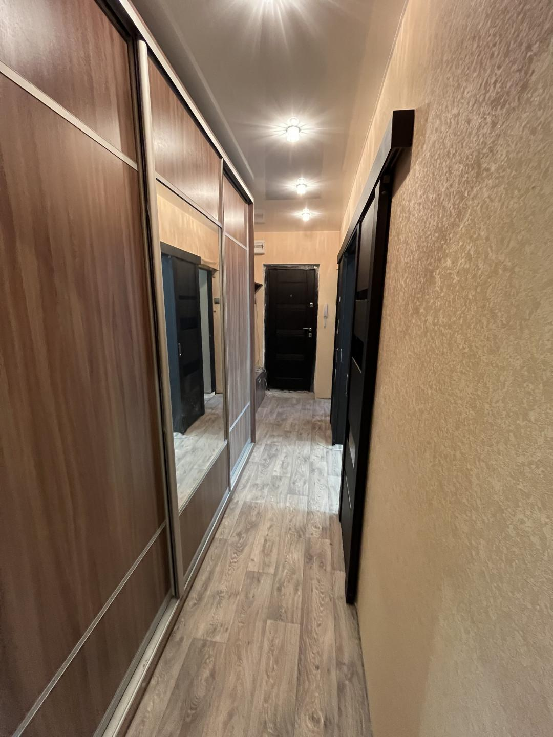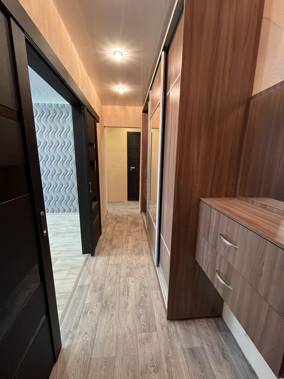 Ремонт: замена всех окон на ПВХ, замена всех батарей, сантехнических труб и счетчиков, заменена электропроводка на медную, полы бетонная стяжка сверху линолеум, стены выравнены, натяжные потолки с подсветкой во всей квартире.