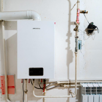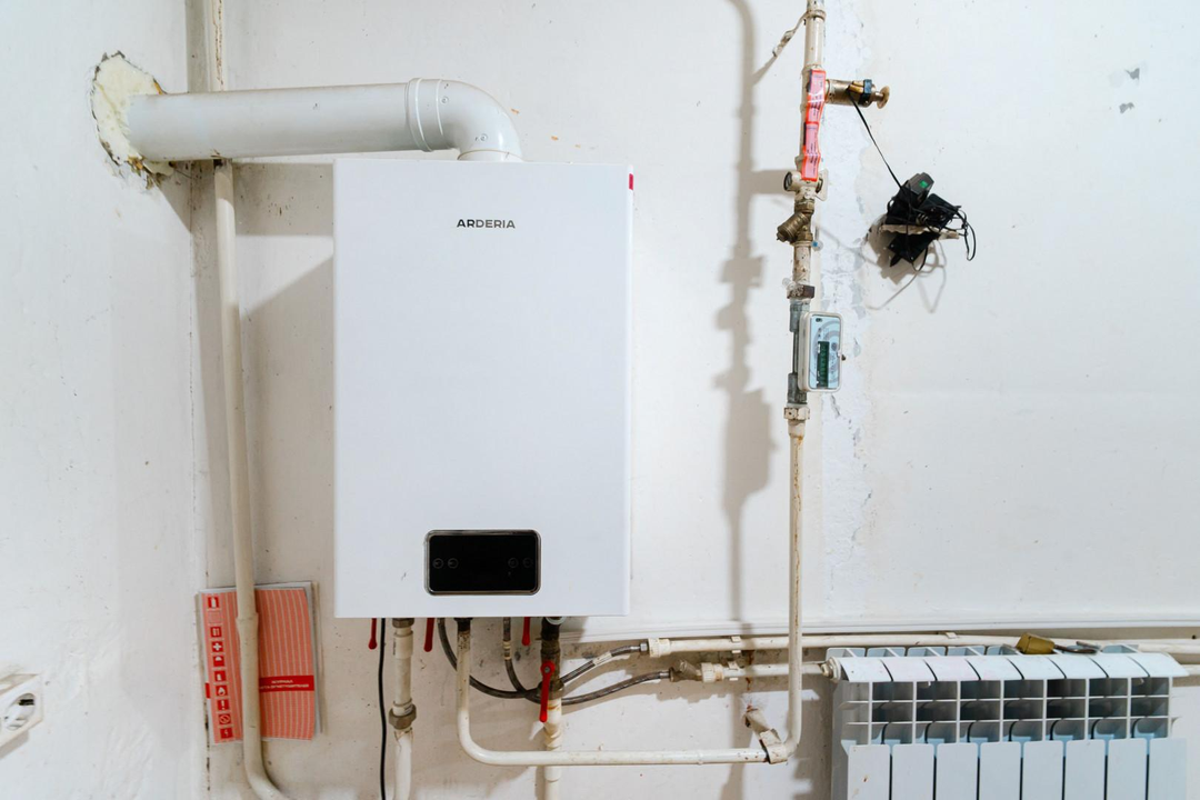 Коммуникации включают индивидуальный газовый котел для отопления и контроля расходов, центральный водопровод и электроснабжение мощностью 15 кВт.