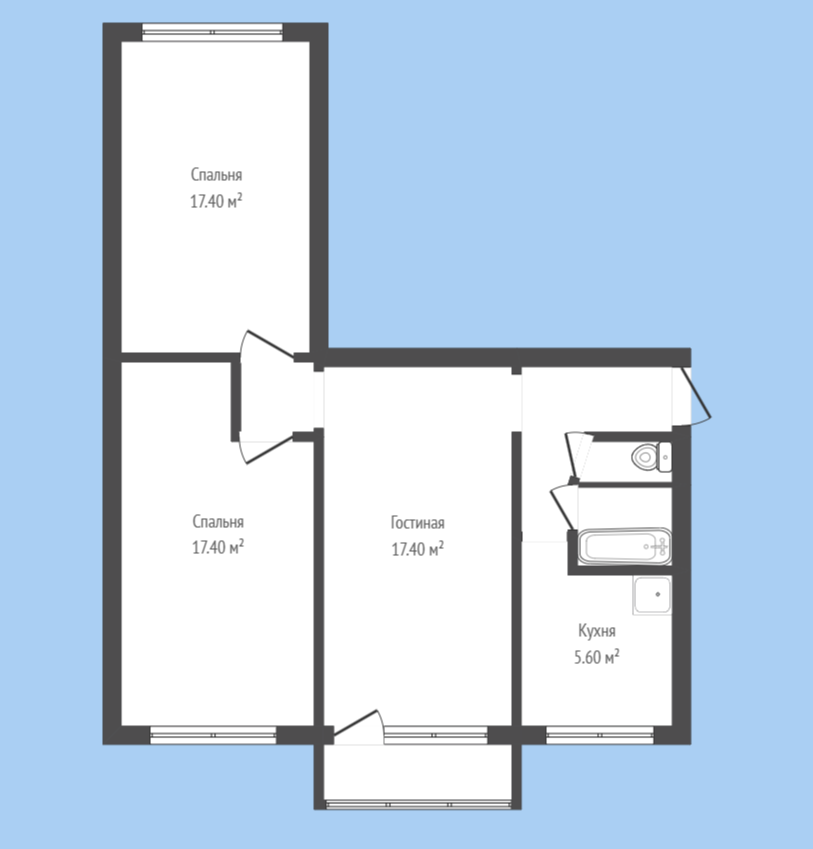 Вторая комната 17,4м² может послужить спальней для родителей.